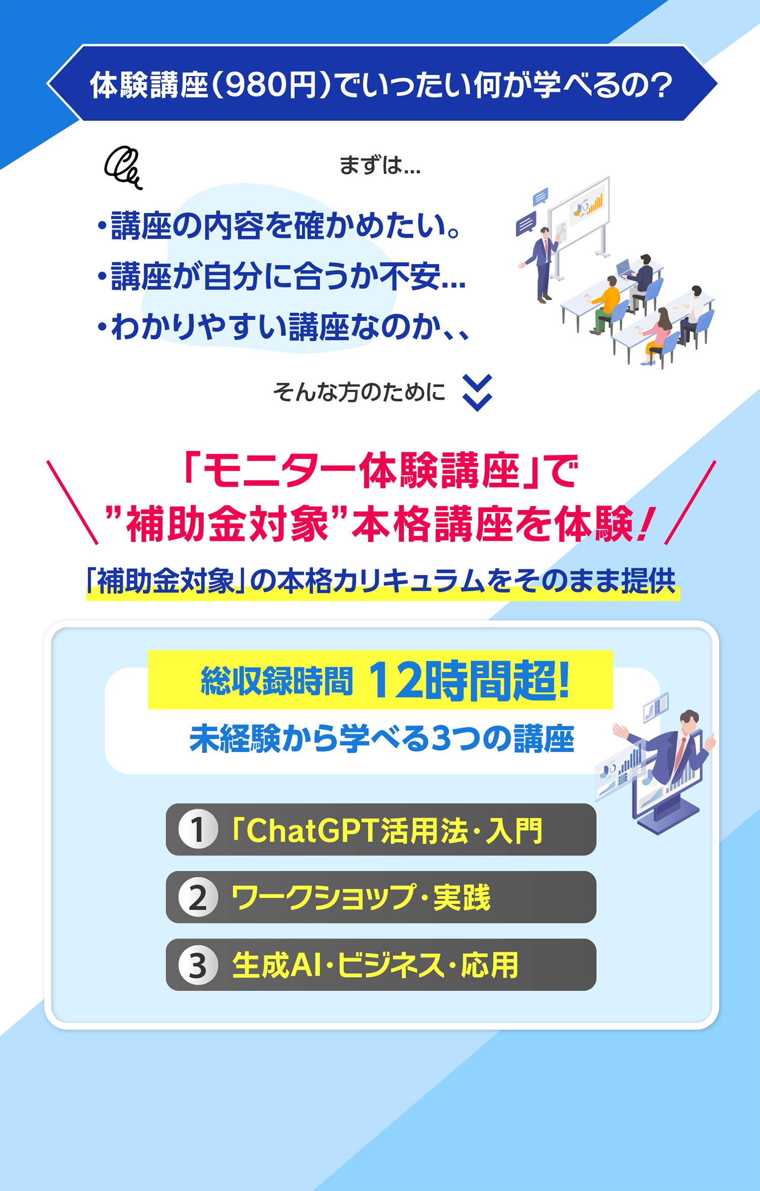 3つの講座で合計12時間!