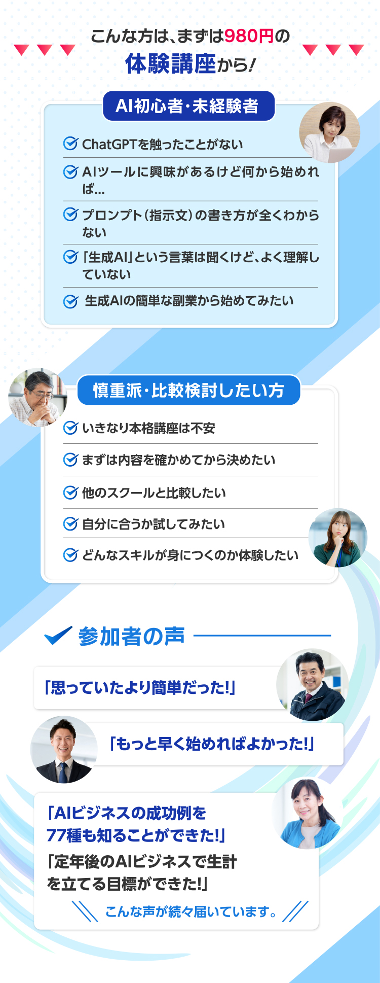 会社員から定年退職者、主婦の方でも