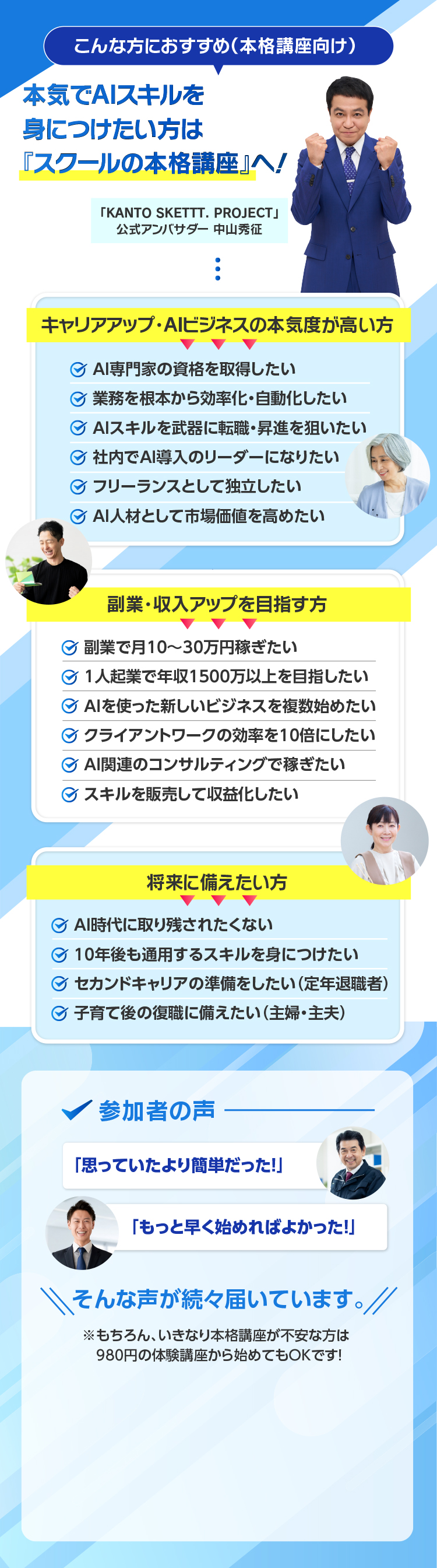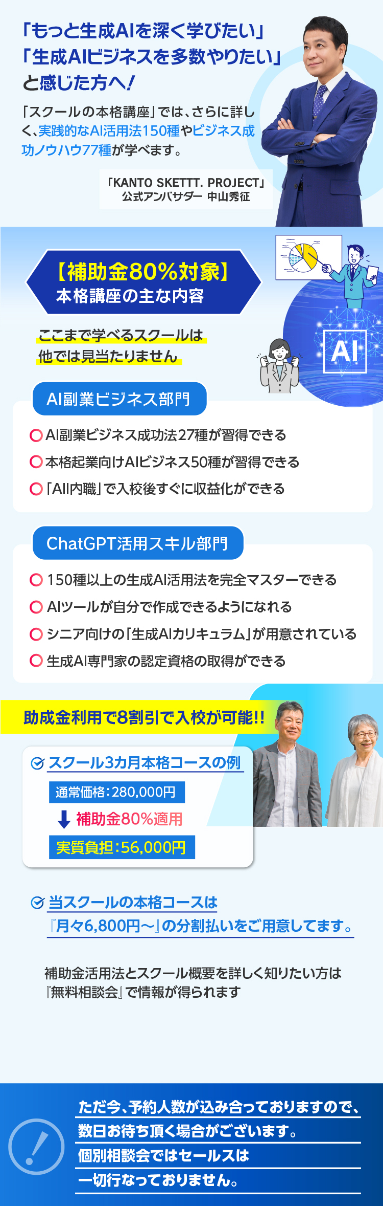 スクールの勧誘説明やセールスは一切おこなっておりませんので、安心してご参加下さい